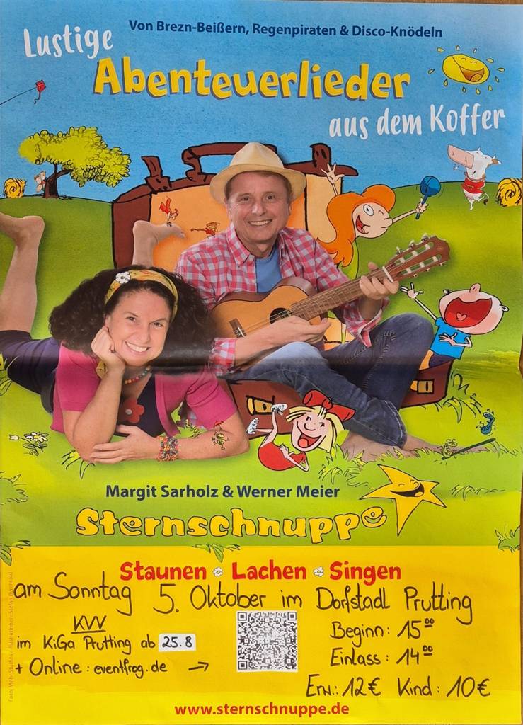 Am Samstag, 26. Oktober 2024 um 15 Uhr findet ein Konzert mit Sternschnuppe im Dorfstadl statt. Ihre unglaubliche Spielfreude und die gelungene Mischung aus traditionellen und eigenen bayerischen Liedern sorgen vom ersten Ton an für eine Riesen-Gaudi bei Kindern und Eltern. Also, gleich Karten für die ganze Familie sichern für dieses großartige Sternschnuppe Mitsing-Konzert, denn ‚nur selba singa is scheena!‘ Kartenvorverkauf unter: